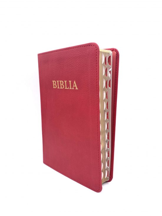 Biblie format mare, copertă din imitație piele, margini aurii.